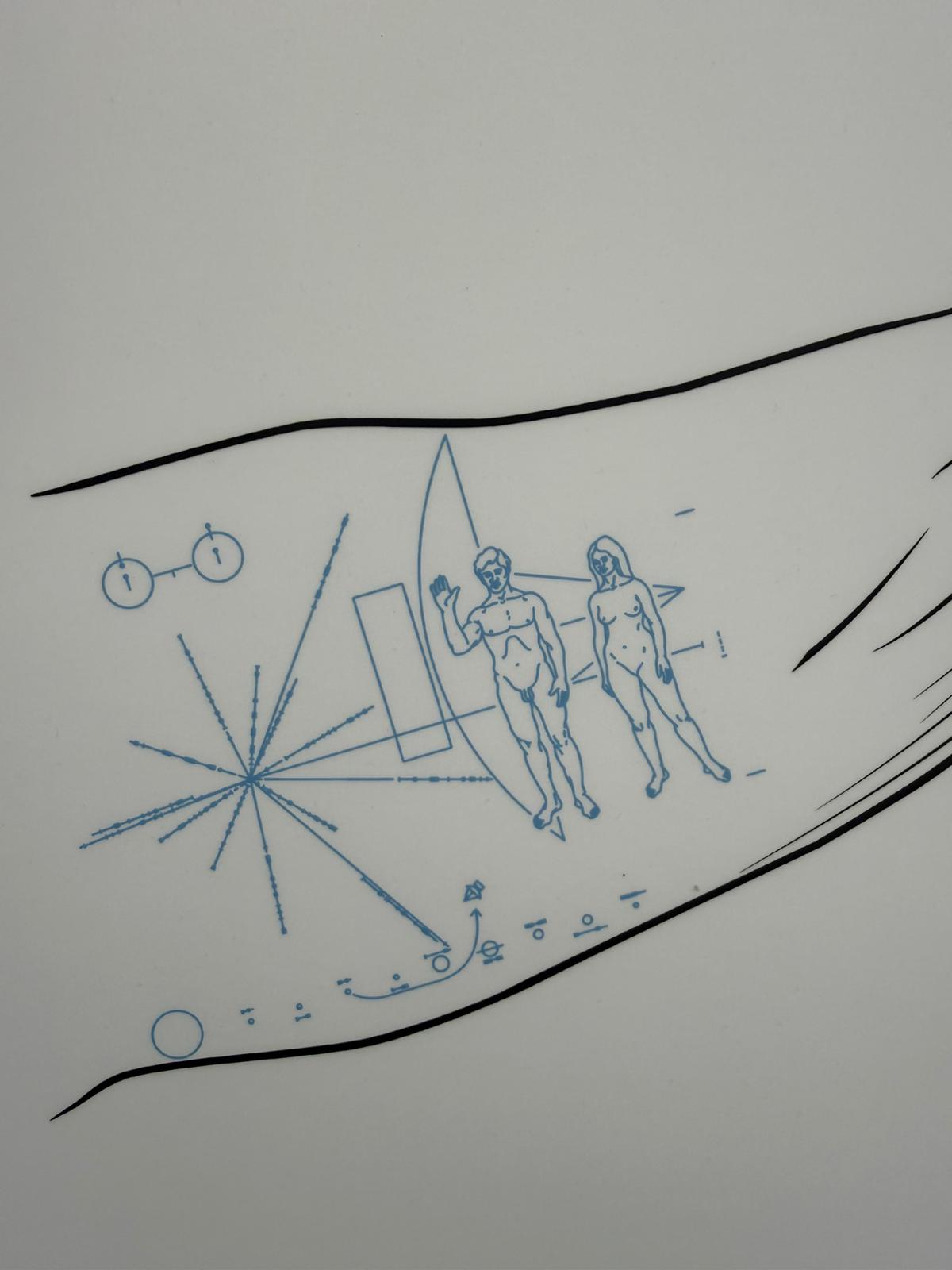 Con placca dei Pioneer si indica l'effigie presente sulle placche commemorative in alluminio anodizzato con oro, che furono posizionate a bordo delle sonde Pioneer 10 e 11 rispettivamente nel 1972 e nel 1973. Nell’eventualità che le due sonde venissero intercettate da esseri extraterrestri, le placche mostrano le immagini di un uomo e una donna nudi attorno alle quali si trovano vari simboli che hanno il fine di fornire informazioni sull'origine delle sonde.