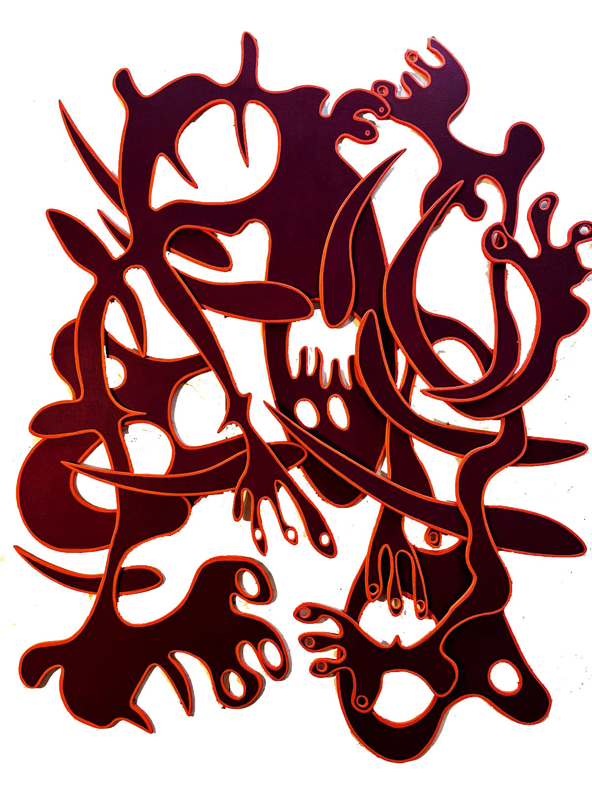 Pannelli di legno rivestiti in tela, dipinti ad acrilico e assemblati
